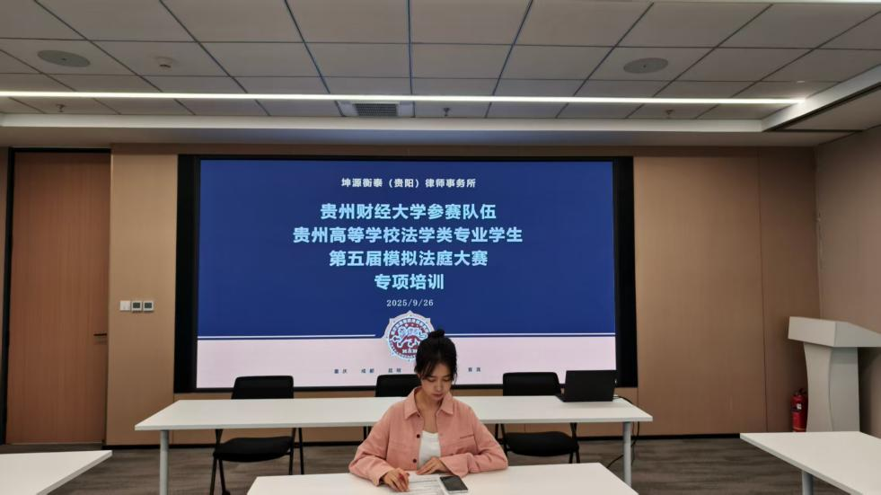 (英亚游戏平台 李佳佳 报道|摄影 罗一博)为切实提升学生专业实践能力,助力学校代表队在贵州省第五届高等学校法学类专业学生模拟法庭大赛中斩获佳绩,9月26日,英亚游戏平台专任教师罗一博带领参赛学生前往重庆坤源衡泰(贵阳)律师事务所开展赛前模拟专项培训。