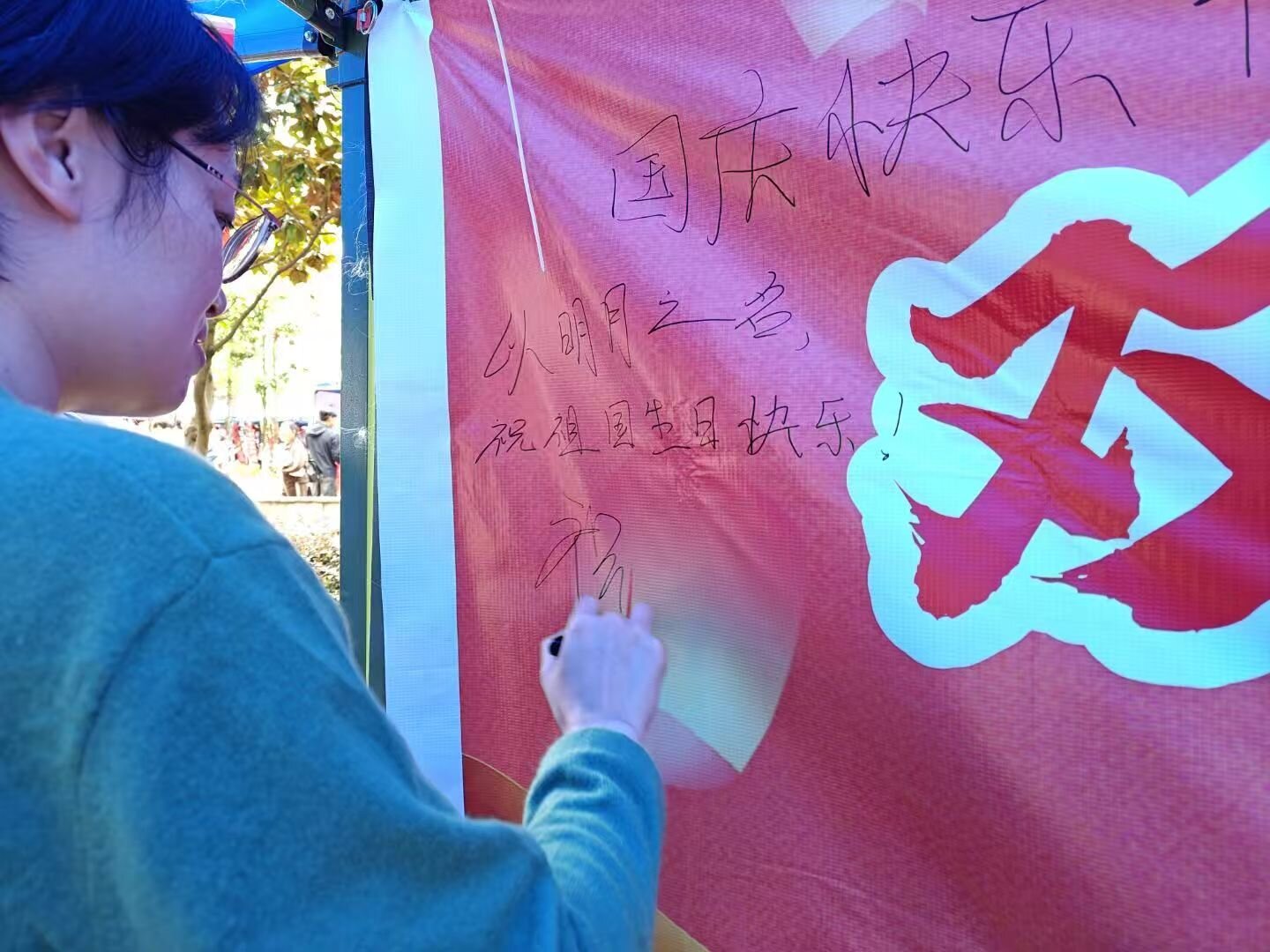 “法言法语·祝福传情”环节现场设置了“法治祝福墙”,同学们以法学专业知识为切入点,将对祖国的祝福、对法治的向往融入文字之中。有的同学写下“愿以《民法典》为盾,护家国安宁;以《宪法》为灯,照前路光明,祝祖国母亲生日快乐!”的真挚寄语;有的同学则用“中秋月明,映照万家团圆;法治同行,守护社会和谐”的对仗句表达心声。
